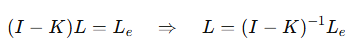 수식을 보면, 한지점에서 다른 지점으로 가는 빛의 총 양은 자발광과 다른곳에서 들어온 반사광의 총합으로 구성된다.