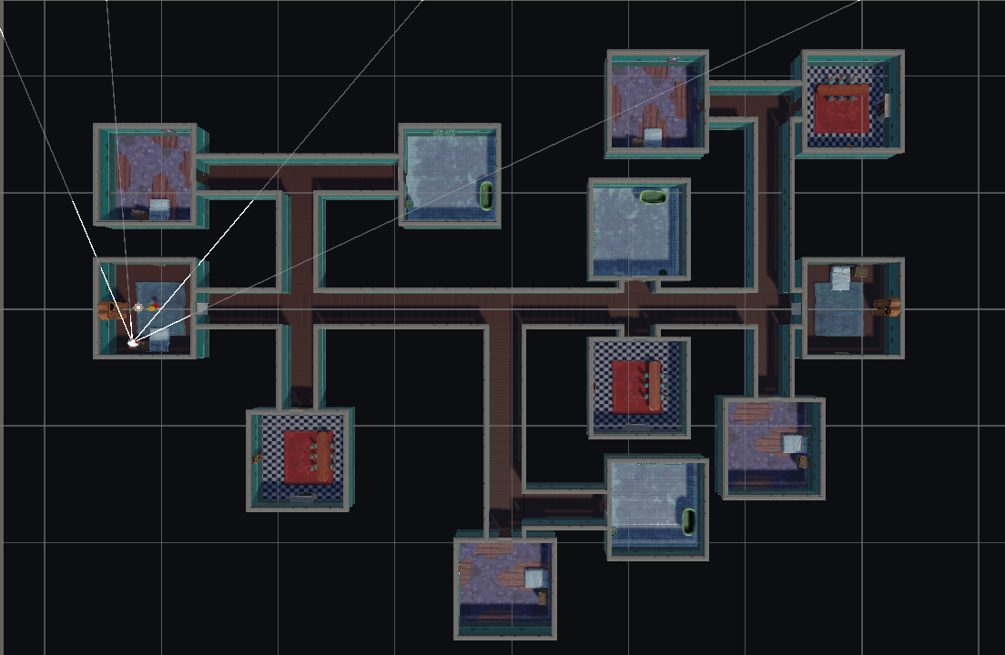 방을 만들면서 혹시 나중에 랜덤으로 방을 배치해야 할 상황이 생길 수 있을 것 같아, 모든 방의 규격을 동일하게 맞추고 프리팹화시켜 관리했다. 덕분에 나중에 방을 조합하거나 재사용할 때 쉽게 사용할 수 있을 것 같다.